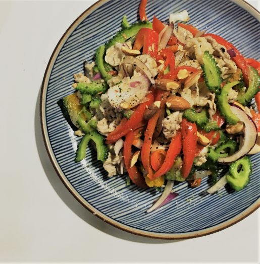 今回、シークヮーサーやナンプラー、ゴマ油の香りが刺激的なドレッシングで食べるサラダのレシピを作成してくれました。ゴーヤ、パプリカなど色鮮やかで栄養豊富な夏野菜と豚しゃぶを食べられる内容で、井上さんいわく「ご飯のお供はもちろん、お酒のツマミにもなる」ものになりました。