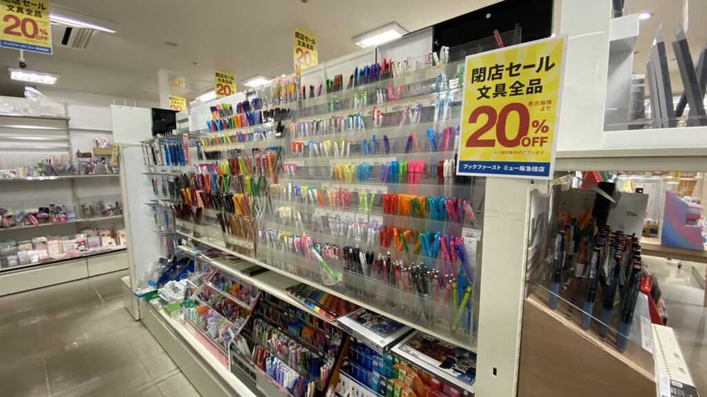 現在、文具20%OFFのセールを開催中です。閉店前に是非一度足を運んでみてはいかがでしょうか。