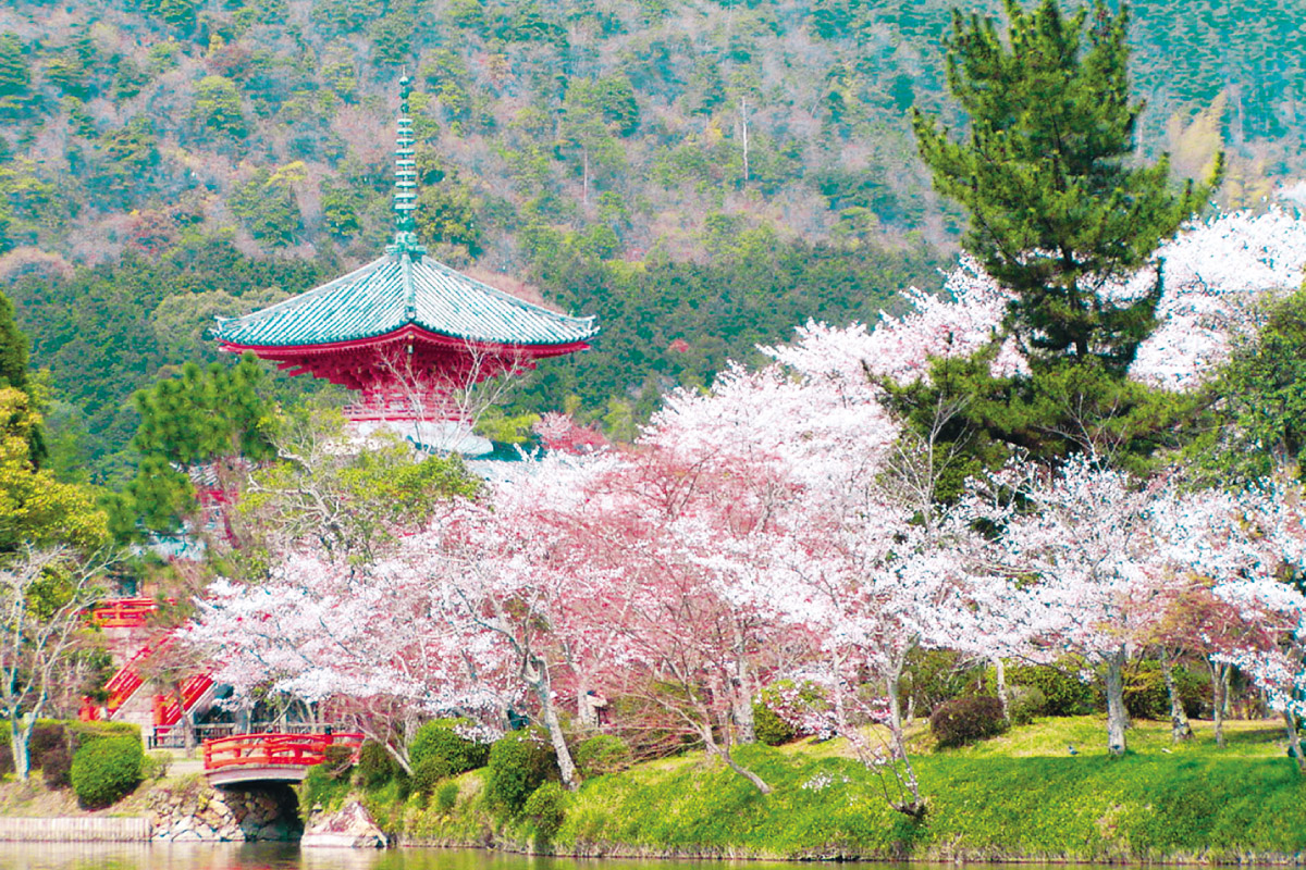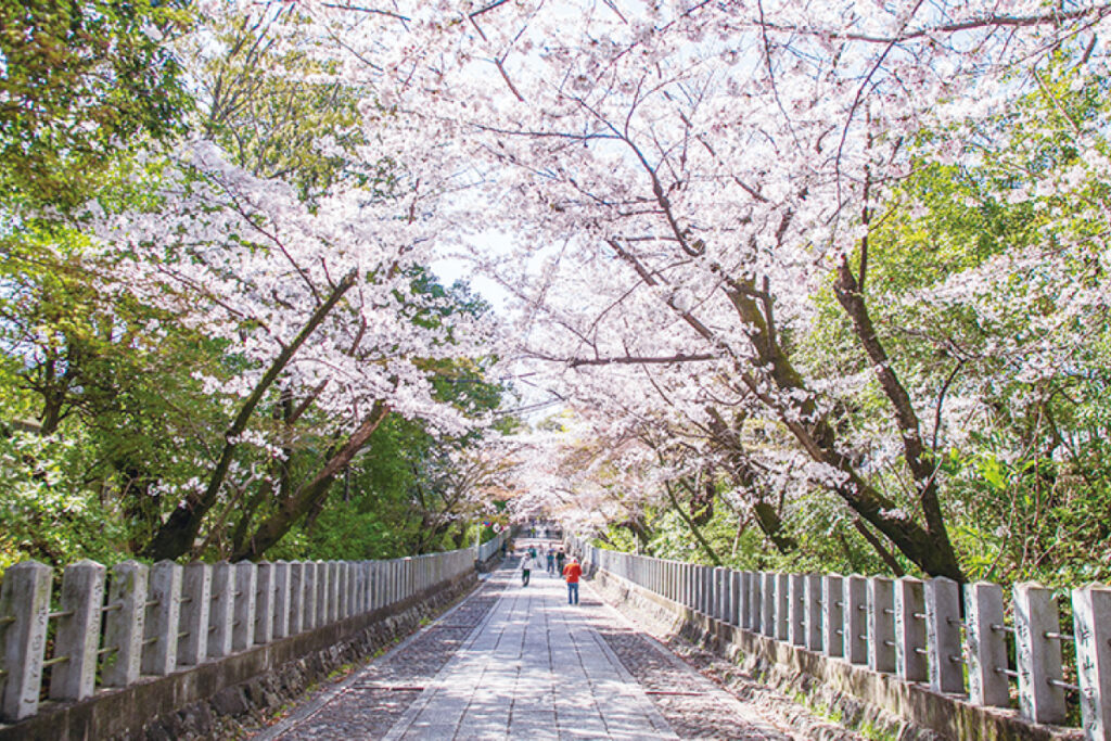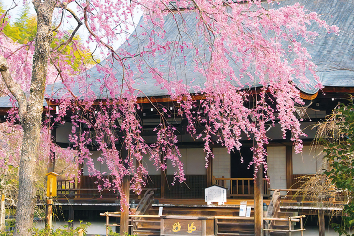 西山にある善峯寺も桜の名所として名高い。経堂のそばには、徳川家光の側室・桂昌院お手植えと伝わる樹齢約300年の見事なシダレザクラが。見ごろは彼岸桜から枝垂れ桜、山桜、ぼたん桜へ移りながら約1カ月続き、起伏にとんだ境内を巡りながら、春の西山を堪能したい。