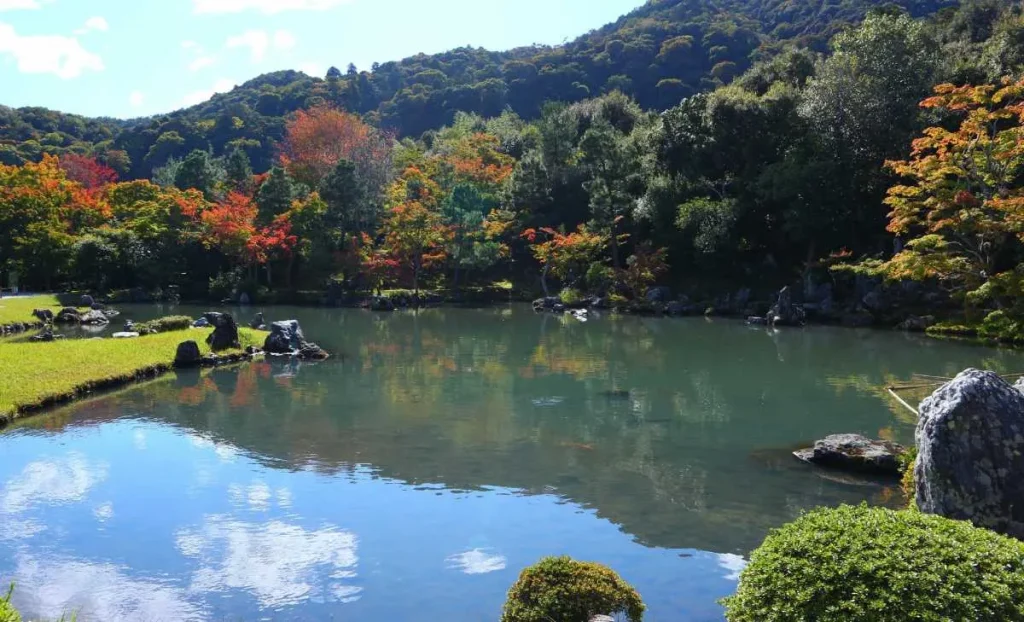 足利尊氏を開基とし、夢窓疎石を開山として開かれたのが天龍寺。曹源池庭園(そうげんちていえん)は約700年前の夢窓国師作庭当時の面影をとどめていると言われ、大きな池に周囲の山々を映す景色は絶景です。季節の花々が楽しめる百花園にもぜひ足を運んでみてください。