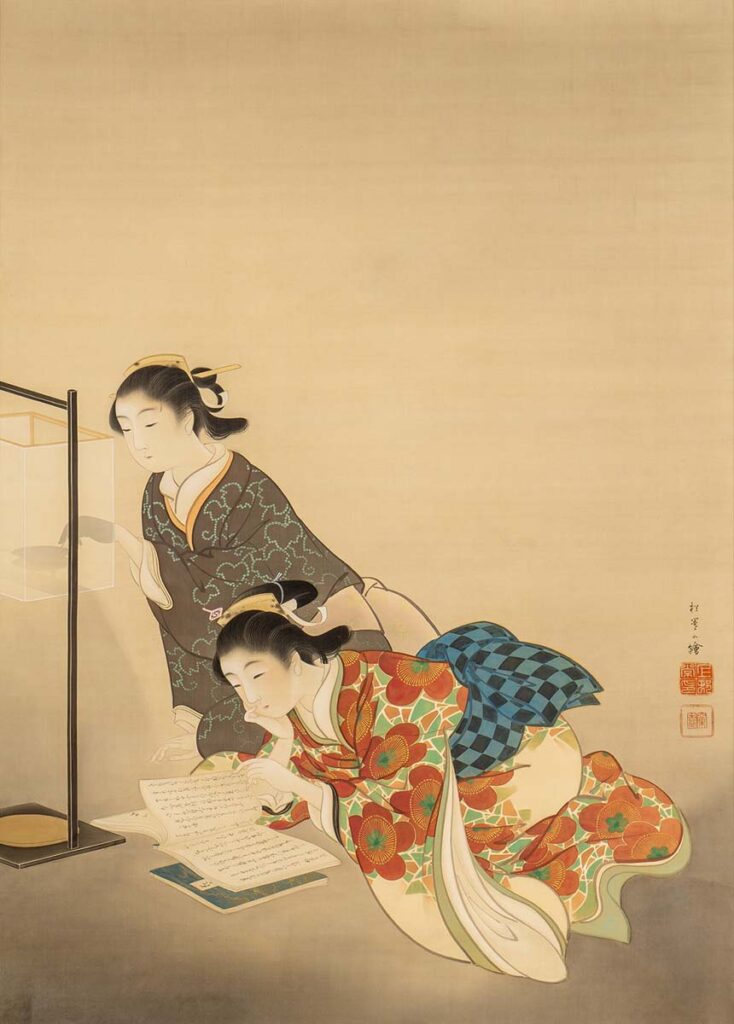 美人画とは江戸時代に生まれたジャンルのひとつ。洗練された衣装や優れた着こなしを絵画として愛でる文化が広まり、浮世絵師たちが描いた美人画を多くの人々が求めた。さらに近代に入ると、展覧会の場でも美人画が重視されるようになる。