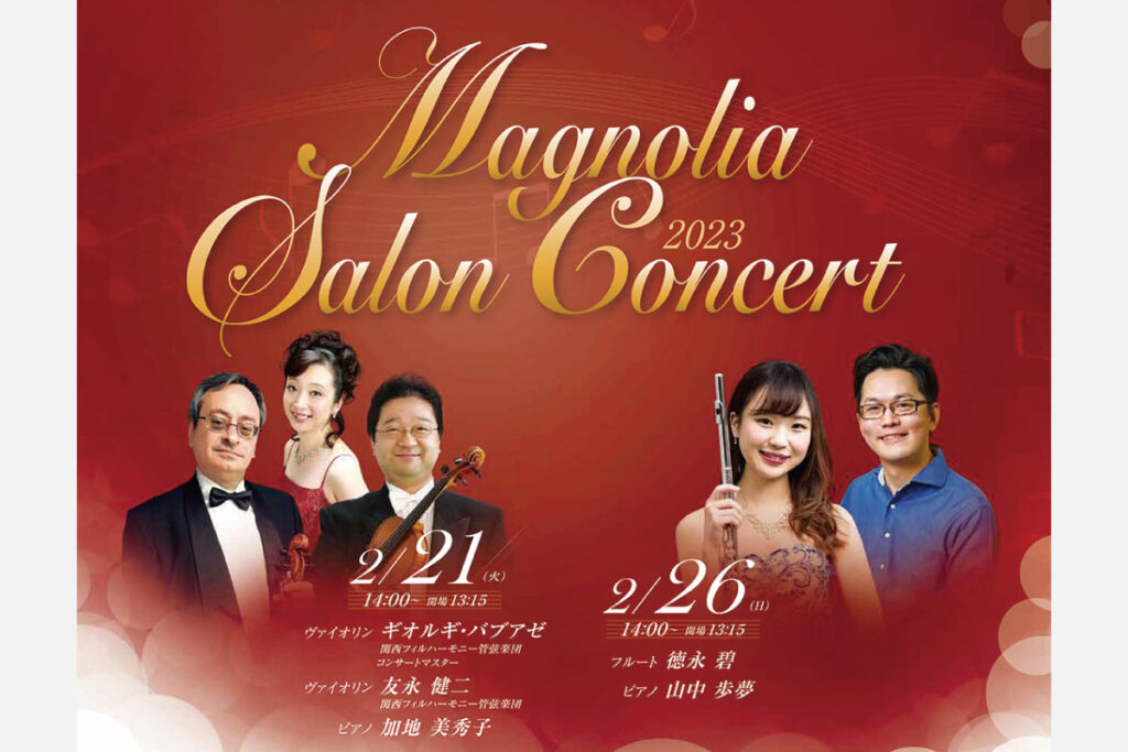池田市にある逸翁美術館で、初心者も気軽に参加できる美術館コンサート「マグノリア サロンコンサート」を2023年2月21日(火)・26日(日)に開催する。