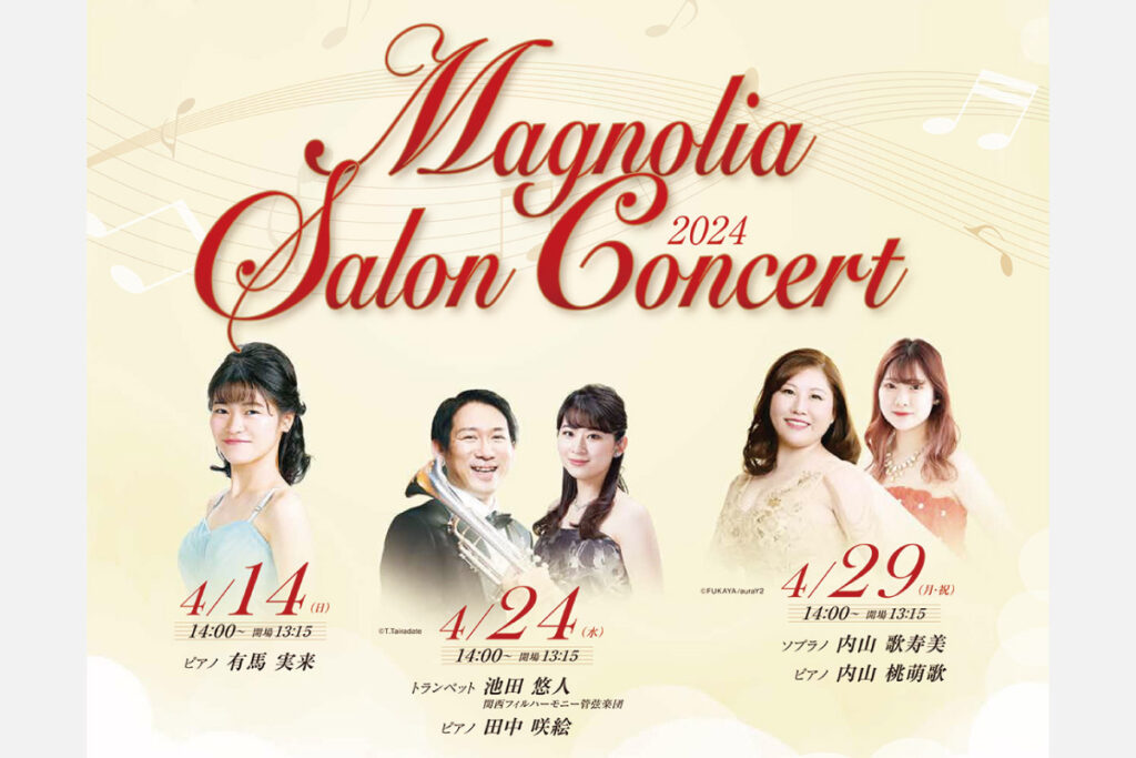 池田市にある逸翁美術館で、クラシック音楽に触れるひと時を堪能できる 「マグノリア サロンコンサート」を4月14日(日)・24日(水)・29日(祝)に開催する。