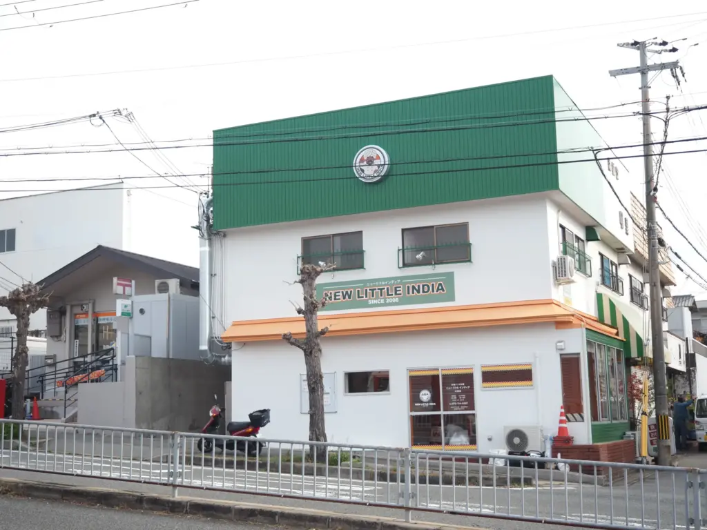 ゆうちょ銀行のすぐ横に、鮮やかな緑の看板が目印のインド料理店