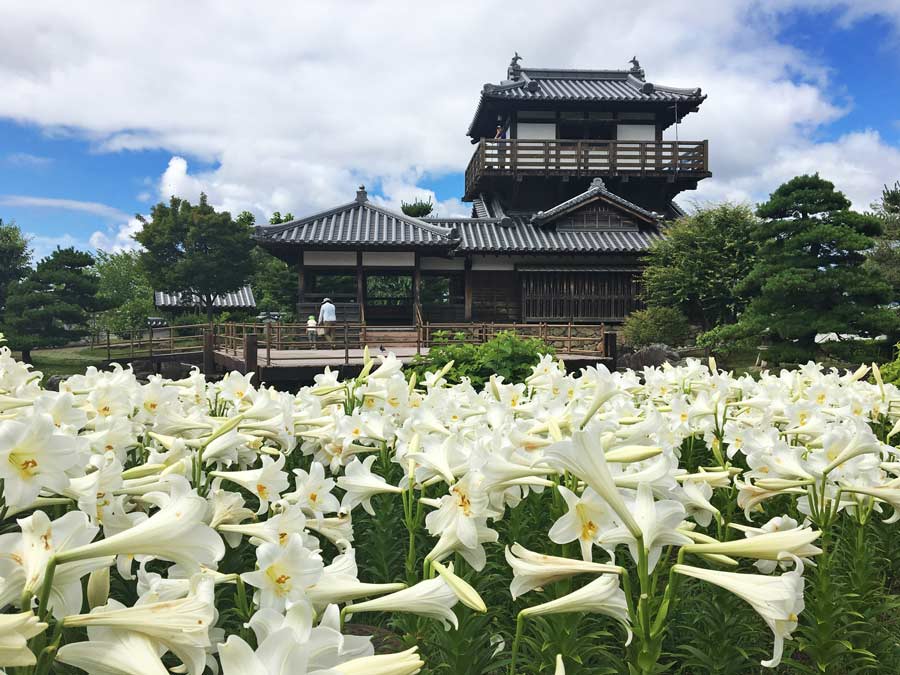 また、池田城跡公園は一年を通じて様々な花が咲き、特に6月のテッポウユリが有名。