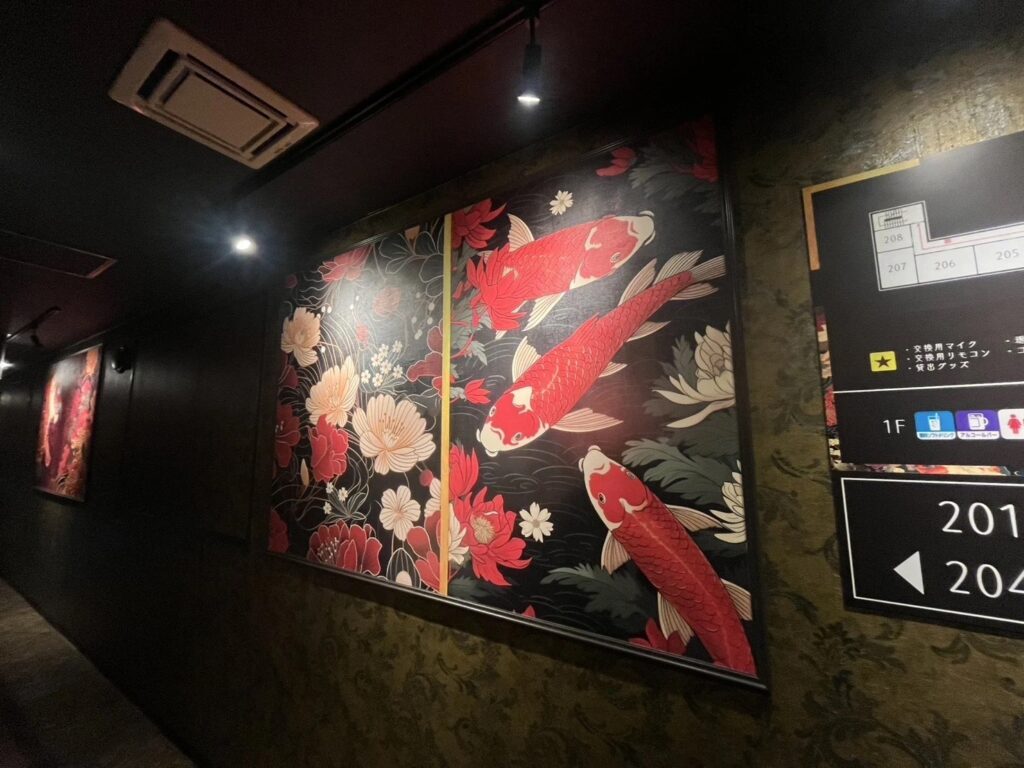 店内は、京都をモチーフにした古典柄の意匠を取り入れたユニークな内装デザインで、お寺を模したネオンや和柄の装飾が情緒的で非日常的な空間が演出されており、特別な雰囲気の中でカラオケを楽しめます。