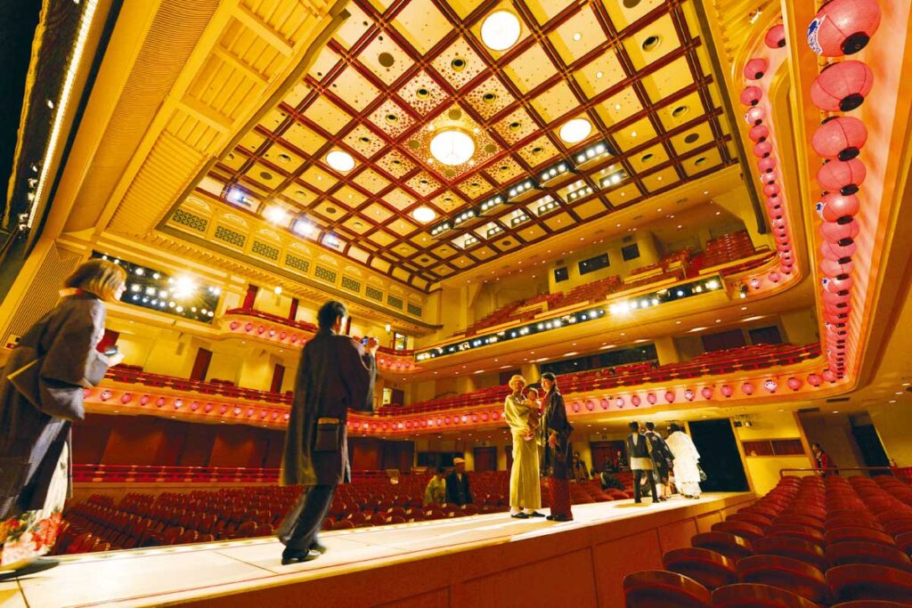 江戸時代に芝居小屋で発明された、歌舞伎劇場特有の舞台機構を体験できる、約30分のツアー。舞台転換に使用される「廻り舞台」や舞台の一部が昇降する「迫(せ)り」 の体験、「花道」での記念撮影などを楽しもう。ツアー前後に国の登録有形文化財である建物内の観覧もできる。