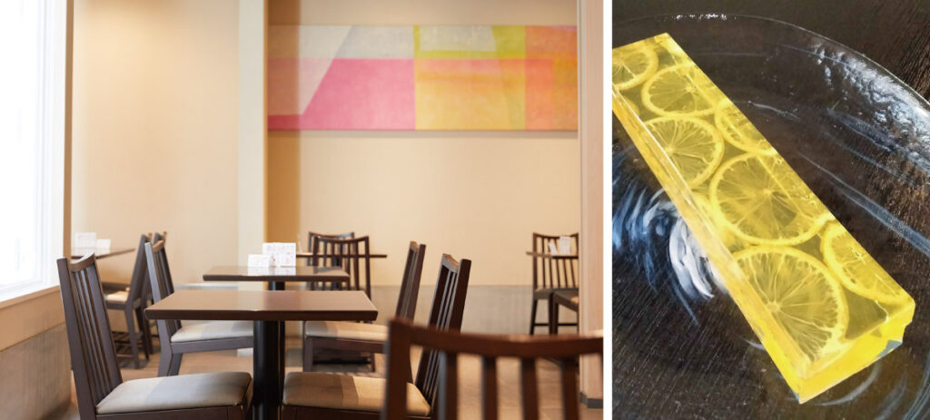 商品が買えるのは阪急高槻市駅すぐにある同店。タニチの新業態としてランチなどを提供するかたわら、キッチンの奥では担当の福田さんが日夜、寒天商品の試作も行う。