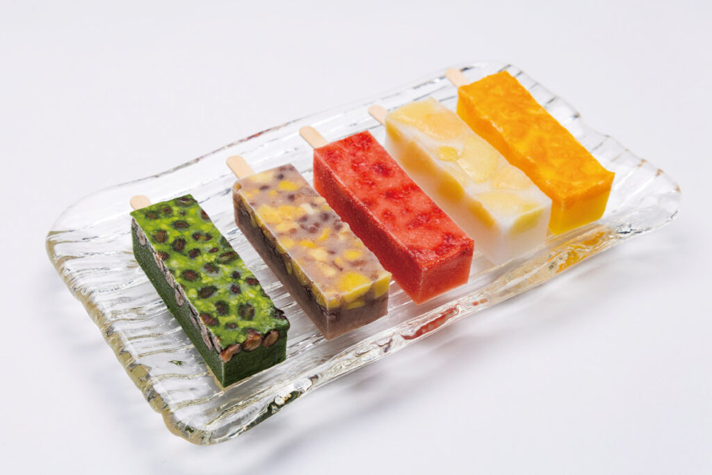5年前に登場し夏のヒット商品となっている冷菓。同店で大人気のフルーツ大福と同じ、最高級の食材を贅沢に使用し、葛の弾力と滑らかさでまとめている。新食感も楽しい凍らせていただく夏の和菓子、人気商品のため早めの購入を。