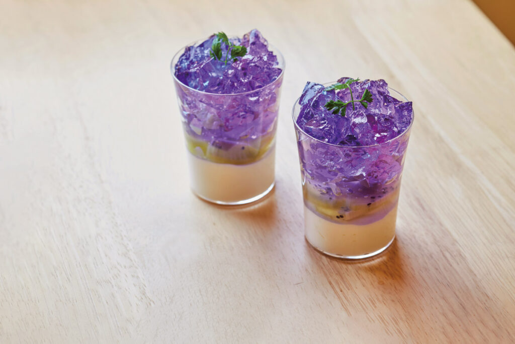 寒天ぷりんは滑らかな口当たりとすっきりとした甘さ、水ようかんは冷やしてツルっと食べたい。夏に向けて寒天を使用したスムージーも登場する予定。テイクアウトで寒天スイーツを楽しんで。