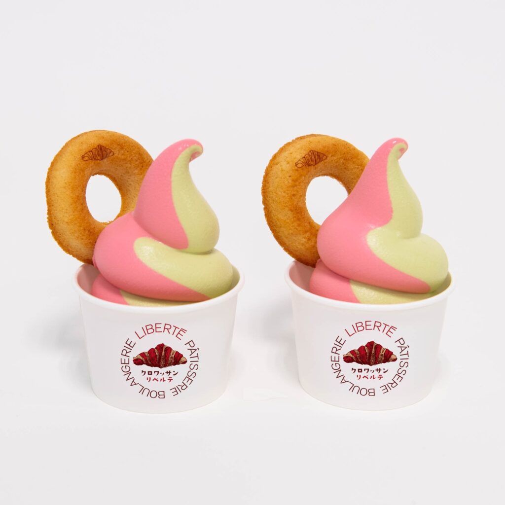 フランスの定番ナッツ&果物、「ピスタチオ」と「フランボワーズ」の味わいを一度に楽しめる、ブランド初となる見た目も可愛いカラフルなソフトクリームがリベルテ京都清水店限定で新登場。
