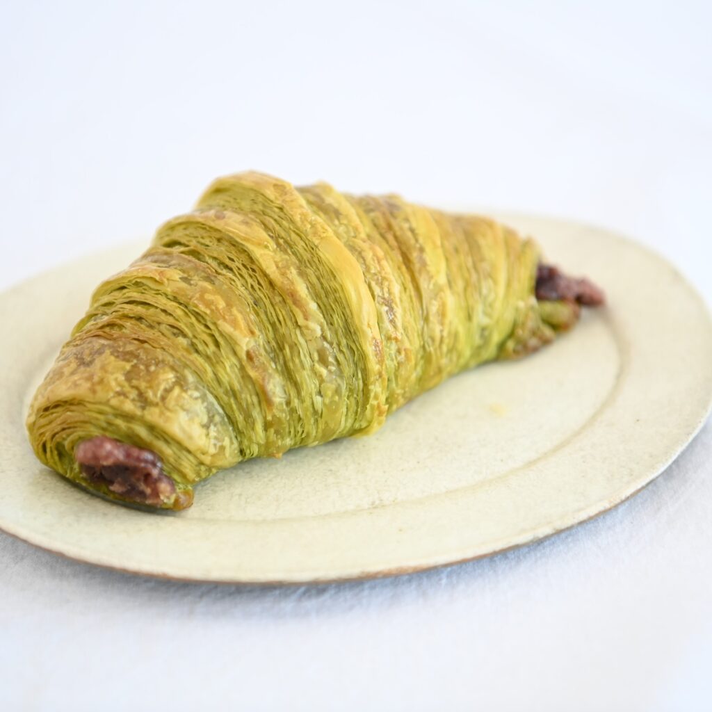 リベルテを代表するクロワッサンなど5種のクロワッサンシリーズを販売。創業140年以上続く宇治抹茶専門店“小澤清風園”の宇治抹茶と、京都で古くから製餡所を営む都製餡の希少価値の高いシュマリ小豆のこし餡を使用。その他、プレーン、フランボワーズ、マンゴーパッション、ショコラのクロワッサンがそろいます。