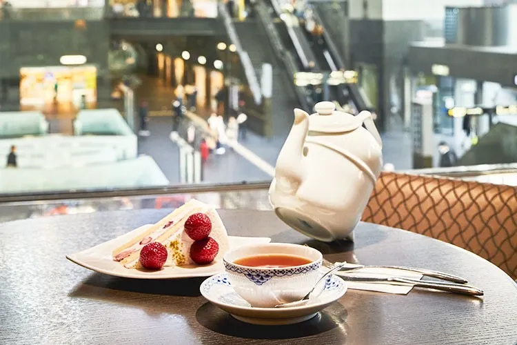 店舗は京都駅中央口2階にあり、おでかけの合間にも立ち寄りやすい場所。スタイリッシュな空間で、優雅なティータイムを過ごしてみては。