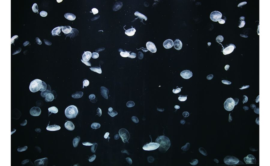 暗闇の中でたゆたう透明の体。まるで宇宙空間をクラゲが浮遊するような雰囲気の「海月銀河(くらげぎんが)」では、水槽の中を漂う神秘的で美しいクラゲの姿に癒やされること間違いなし。