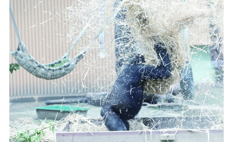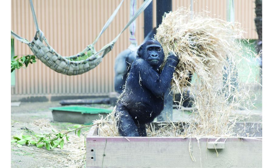 数字のボタンを1~14まで順番に押すことができる、8歳の天才ゴリラ。とはいえ、まだまだやんちゃ盛りでパパ・ママと遊ぶのが大好きな男の子。