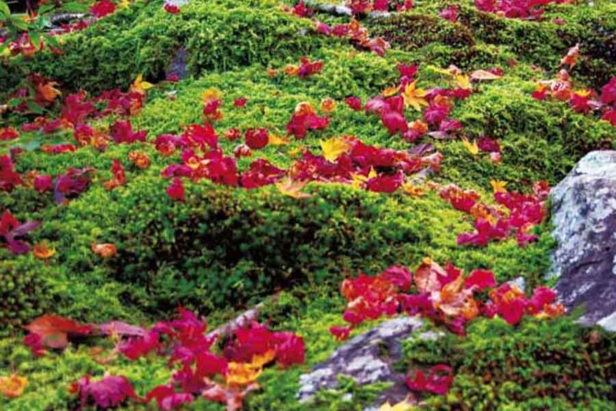 例年11月中旬~12月初旬が見頃。石畳の参道のカエデや銀杏のほか、紅葉のトンネル、終盤の本堂裏に散る紅葉のじゅうたんも見事。