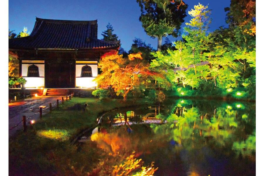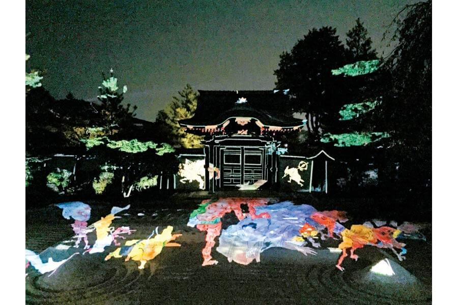 豊臣秀吉の菩提を弔うため、北政所(ねね)が建立。毎年8月18日の秀吉の命日まで行う夜間特別拝観では、ライトアップや妖怪などをモチーフにしたプロジェクションマッピングで、境内が幽玄な雰囲気に! 8月末まで「百鬼夜行展」も開催中。