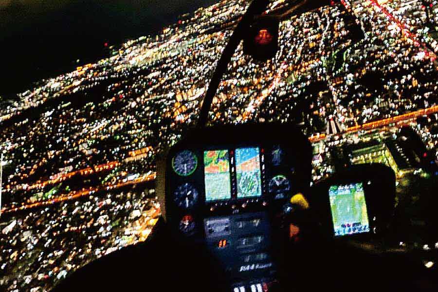 京都市内の上空をヘリコプターで周遊し、ひと時の空の旅を満喫。高層ビルのない京都の夜景を高度1,000mから俯瞰する眺めには思わず感動!