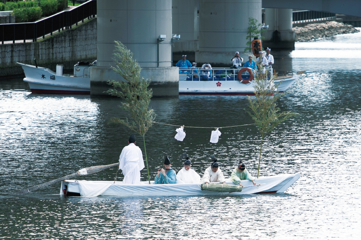 人々の平安を祈り、神童が船上から堂島川に神鉾を流す厳かな神事。