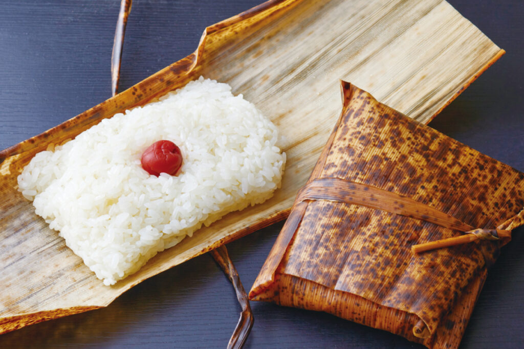 天神祭の伝統的な縁起物「白蒸(しらむ)し」も独自の食べもの。蒸したもち米と梅干を竹の皮で包んだもので、渡御に奉仕する人が、渡御の合間に船上などで食べる。7月24・25日に、天神橋筋商店街にある御菓子司 薫々堂(くんくんどう)にて購入可能(数量限定のため事前予約がベター)。祇園祭の「みこし弁当」(記事はこちら)と似ている理由は定かではないが、どちらも竹の皮や梅干の効果により傷みにくく、腹持ちの良い携帯食として理にかなっているのかもしれない。