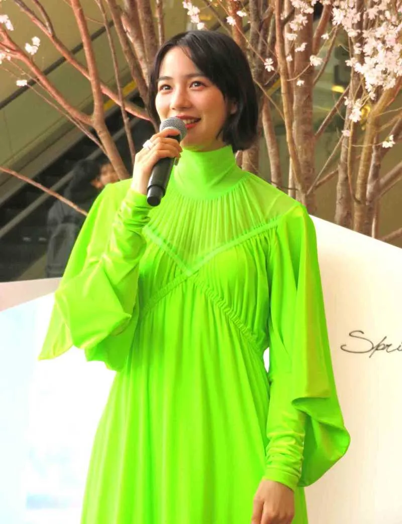 そしてお待ちかね、本日のスペシャルゲスト・のんさんが、鮮やかなイエローグリーンのドレス姿で登場!