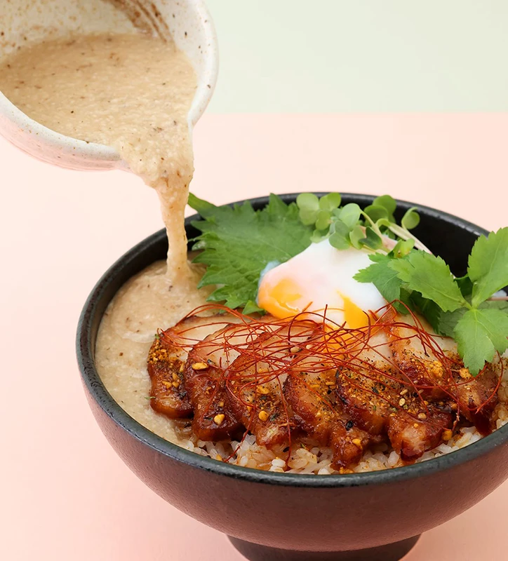 限定メニューは「炙り豚バラと温泉卵の和スパイス 自然薯とろろ丼定食」。山椒ベースのオリジナルスパイスと和ハーブが、味わい深い炙った豚バラとともに堪能できる一品。