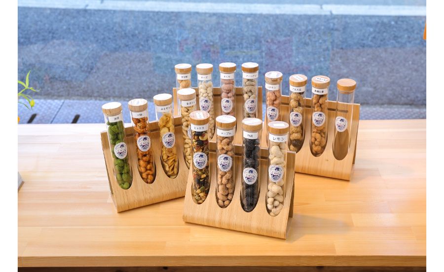 商品一例 プレミアムミックスナッツ、アールグレイカシュー、きな粉カシュー、竹炭カシュー、ピンクペッパーそら豆、メープルカシュー、一味醤油カシュー、紅芋カシュー、生カシュー、チーズパンプキン、レモンカシュー ほか