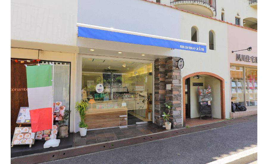 「話題のナッツ屋さんがある」と聞いて訪れたのは、阪急苦楽園口から少し歩いた場所にあるガラス張りのシンプルな店舗。そこが今回のお目当て、カシューナッツ専門店 豆仁です。