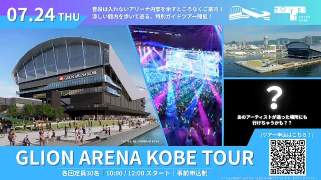 普段一般公開していない神戸ストークスのロッカールームや、コンサートでアーティストが使う楽屋、VIPフロアからの眺めなど、「GLION ARENA KOBE」の魅力をあますところなく案内してもらえます。