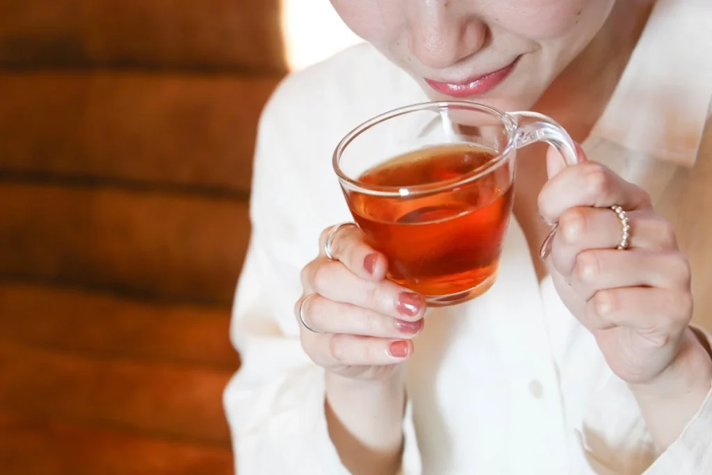 「はちみつ茶葉園」のハチミツ紅茶は、茶葉の風味を活かしながら、天然のハチミツをやさしく溶け込ませたブレンドで、甘すぎず、どこか懐かしいやすらぎの味わい。