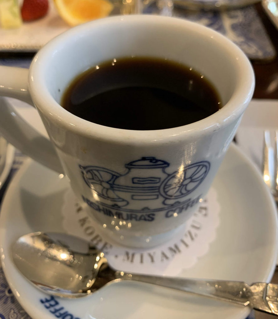 「北野坂 にしむら珈琲店」 なら、やはりおいしいコーヒーをいただきたいところ。往時と変わらないオリジナルブレンドがおすすめです。苦みと香りのベストハーモニーを味わってみて。店内のインテリアともベストマッチです。ぼってりとしたコーヒーカップは、コーヒーのおいしさをより引き立ててくれます。