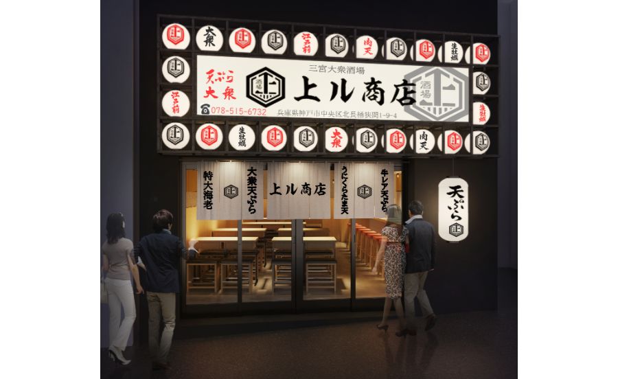 ヘルシーな天ぷらと本格抹茶割りで人気の「天ぷら酒場 上ル商店」が三宮にオープン。