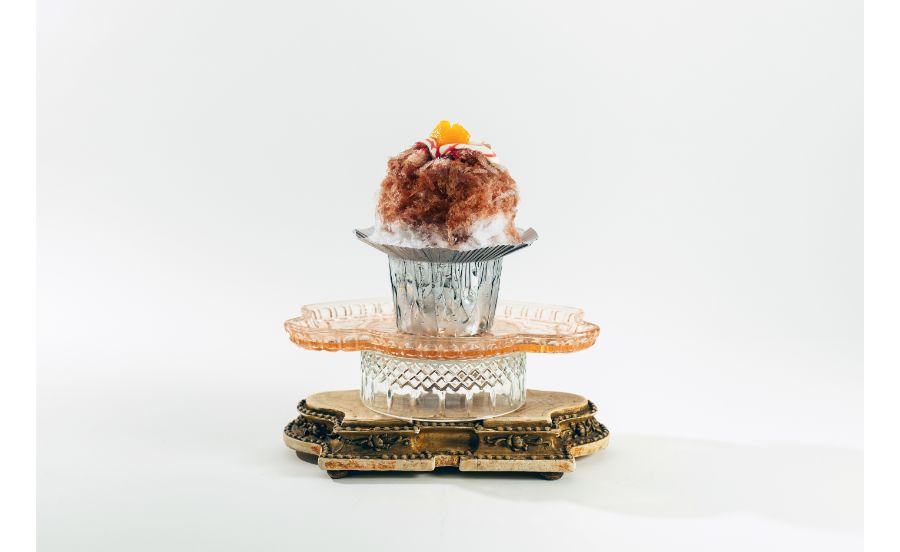 カシスリキュールとオレンジシロップをベースにまろやかなヨーグルトホイップと酸味のある赤すぐりソースで統一感を。お酒の弱い方でも食べやすいかき氷になっています。