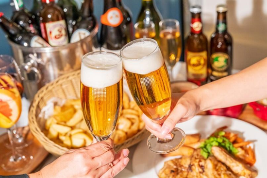 メニューはイタリアンのコース料理に、飲み放題のドリンクがセット。ビールだけでなくスパークリングワインやカクテルなど、贅沢な雰囲気に合うアルコールもスタンバイしています。別途料金でシャンパーニュの飲み放題もセレクトできるので、豪華な夜を楽しんでみては。