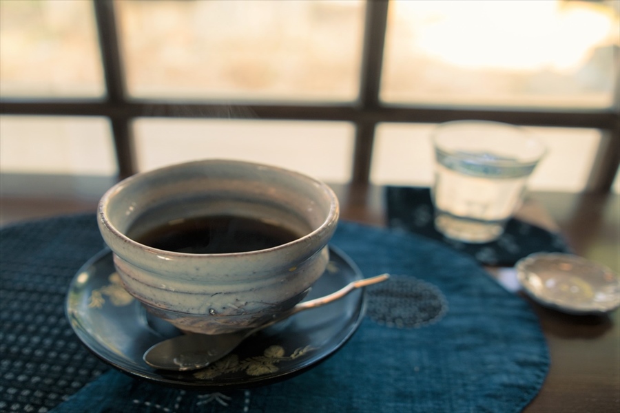 店主が目指すのは、飲み終わってからも余韻が続き、砂糖やフレッシュを加えてもキレがあるスッキリとしたコーヒー。そのため、生豆は最上品質のものを専用の蔵で熟成させ、品質管理を徹底している。着物の帯などの和のディスプレイも店主のこだわり。