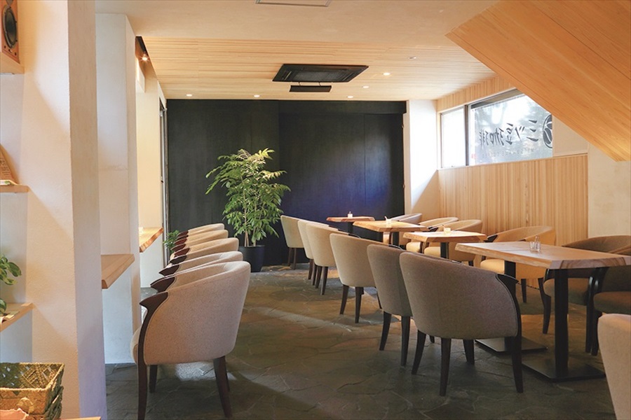 箕面にある、家具専門店に依頼したというおしゃれな内装。木の温もりが感じられる。