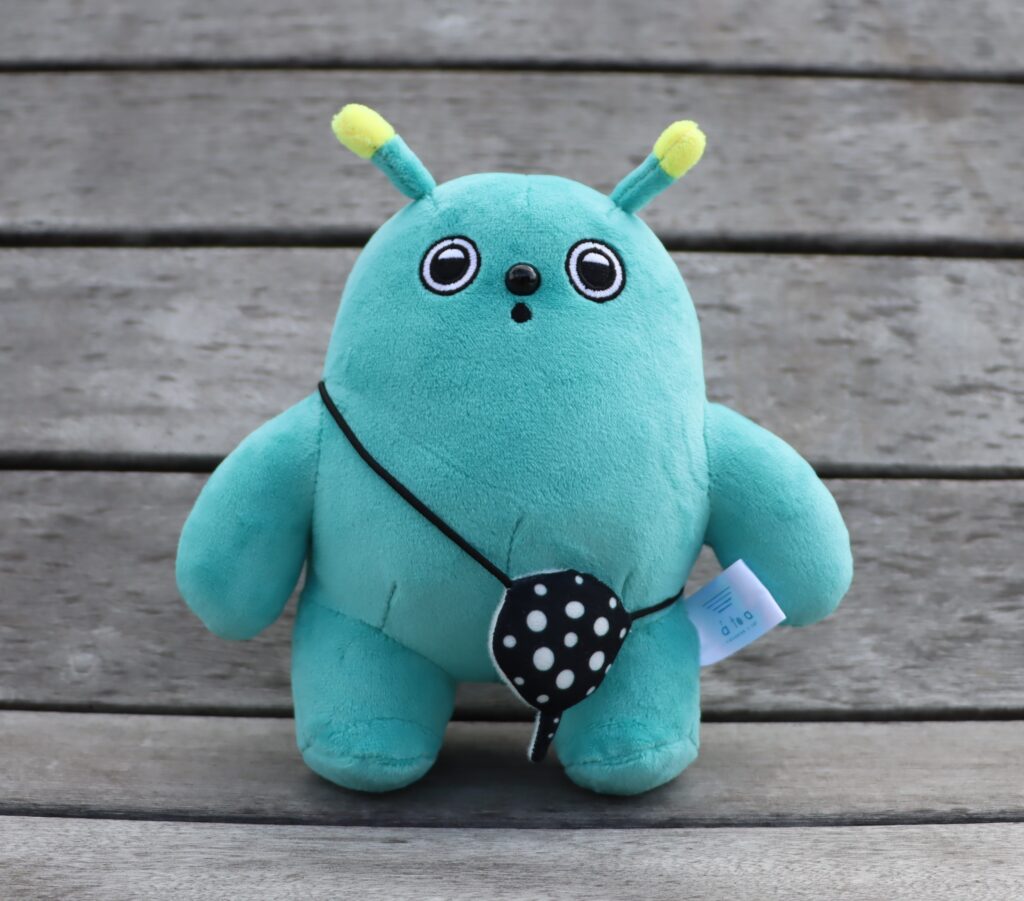 アトア公式マスコットキャラクター「スピ」は、生命の煌めきに導かれ、アトアに現れた不思議な精霊。エメラルドグリーンの曲線的なボディや、つぶらな瞳がとってもキュート!