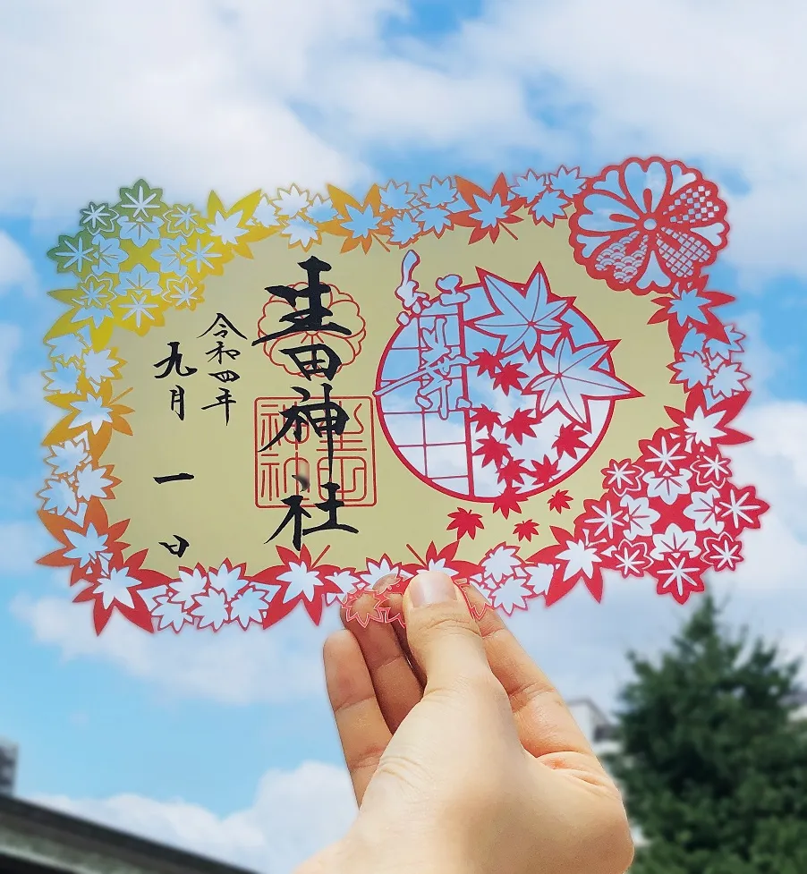 神戸三宮の生田神社では、2022年10月1日(土)より「エッチング加工」による新御朱印『四輝(しき)朱印 秋』をはじめ、 期間限定の御朱印6種を授与する。