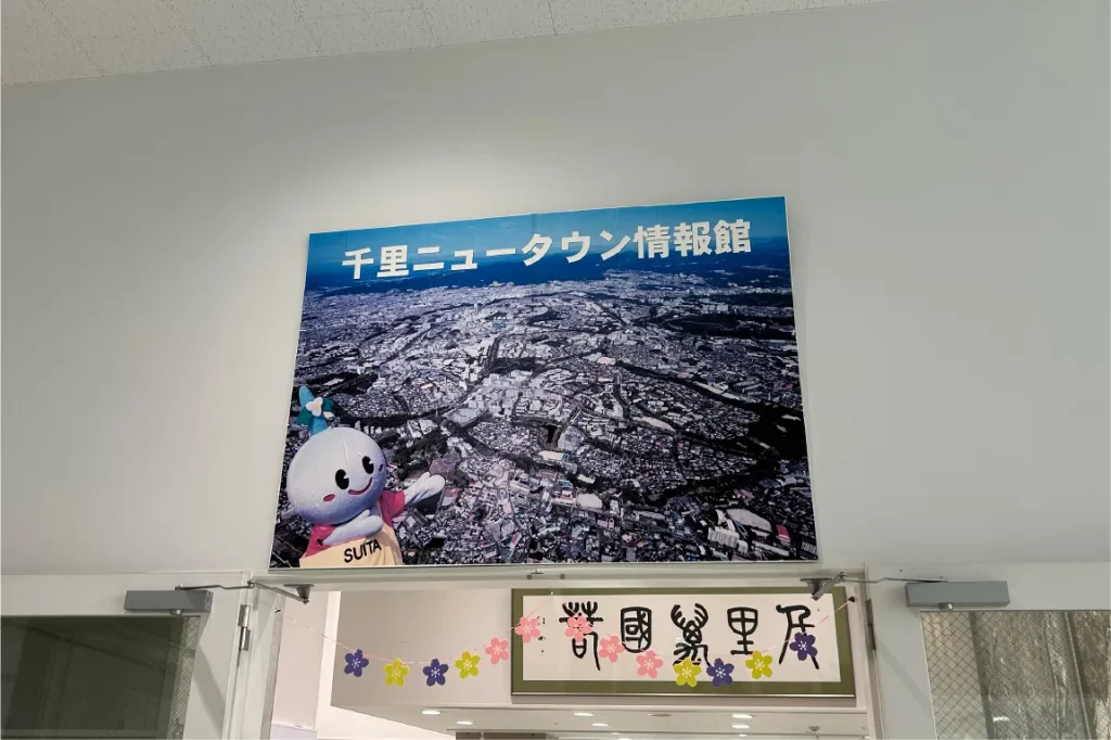 阪急南千里駅の改札を出て、左に曲がってすぐのところにある「千里ニュータウンプラザ」。図書館や出張所があるほか、2階にある「千里ニュータウン情報館」は、さまざまな見どころが詰まったスポットなんです。