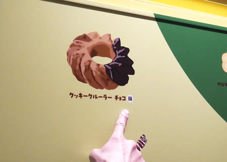 商品のドーナツやパイのイラスト下には二次元バーコードがプリントされ、その商品の情報を読むことができます。好きだった商品、気になる商品はぜひスマホ片手に読み込んで確認してみて。