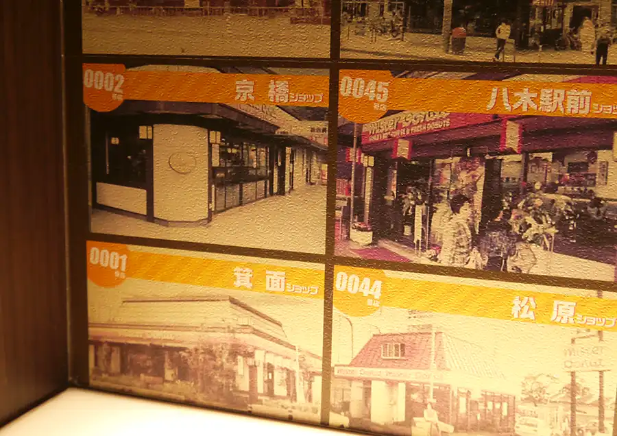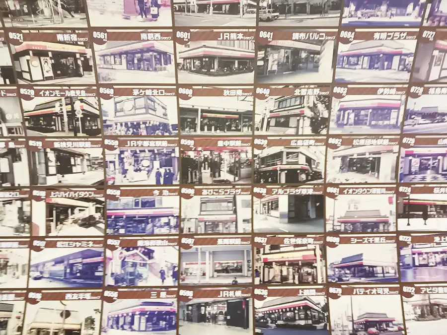 こちら驚きなのが、箕面にある1号店から最新のショップまですべての店舗の写真が並んでいます。2,000以上の店舗が並ぶ様は壮観!