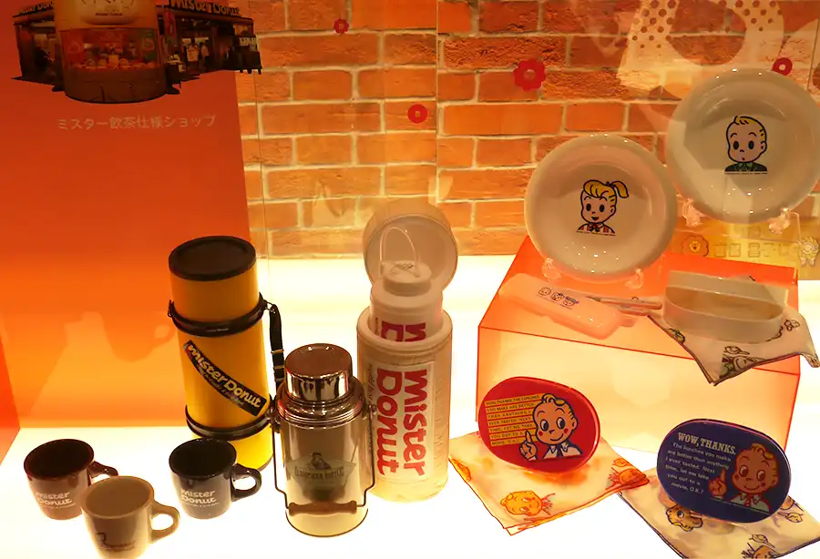 「ミスタードーナツヒストリー」は年代別に展示されています。このオリジナルグッズは、展示内容を不定期的ですが変更しているそう。いつ行っても新しい発見があるのはうれしいですよね。