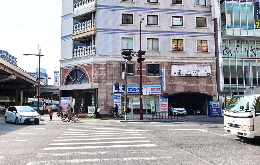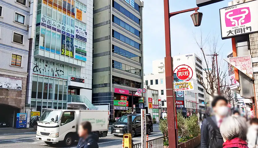 6 左側にDUSKINの文字が入ったビルが見えたらそこがゴール!