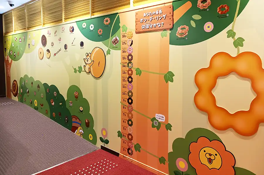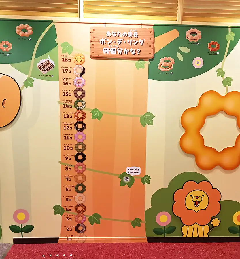 なおこの「ポン・デ・リングの木」では、ポン・デ・リングの数で身長を測ることができますよ!フォトスポットにもおすすめです。