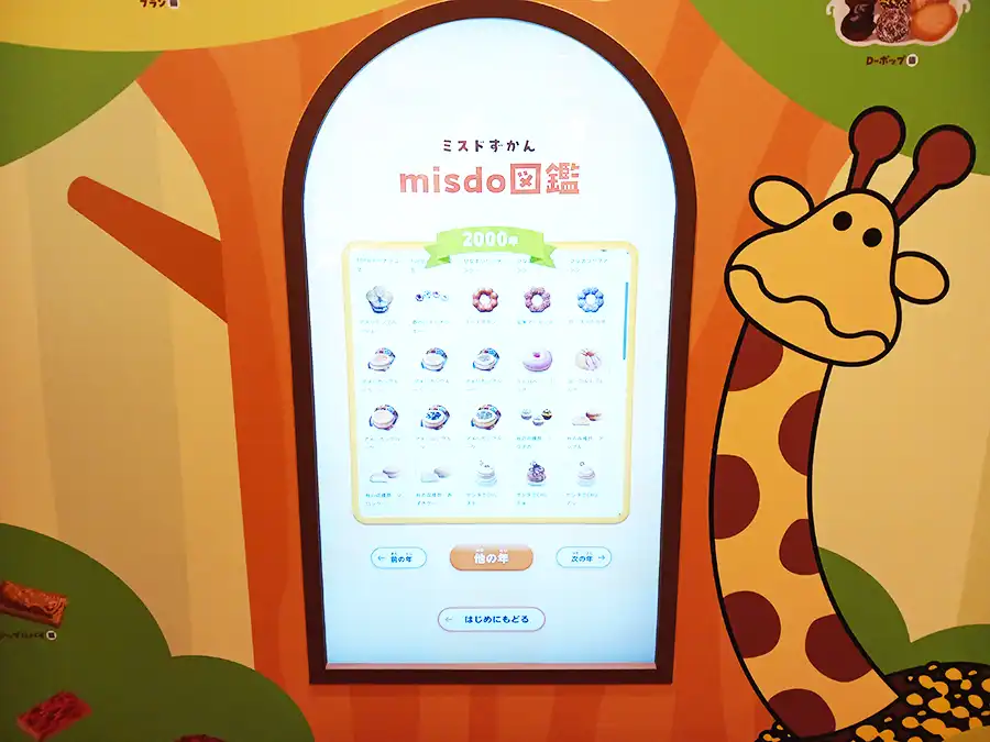 掲出されている商品以外は、タッチパネルで検索できる「misdo図鑑」で見ることができます。「あの商品がない!」となった方はぜひこちらで検索して、お気に入りの商品など思い出に花を咲かせてみるのはいかがでしょうか。