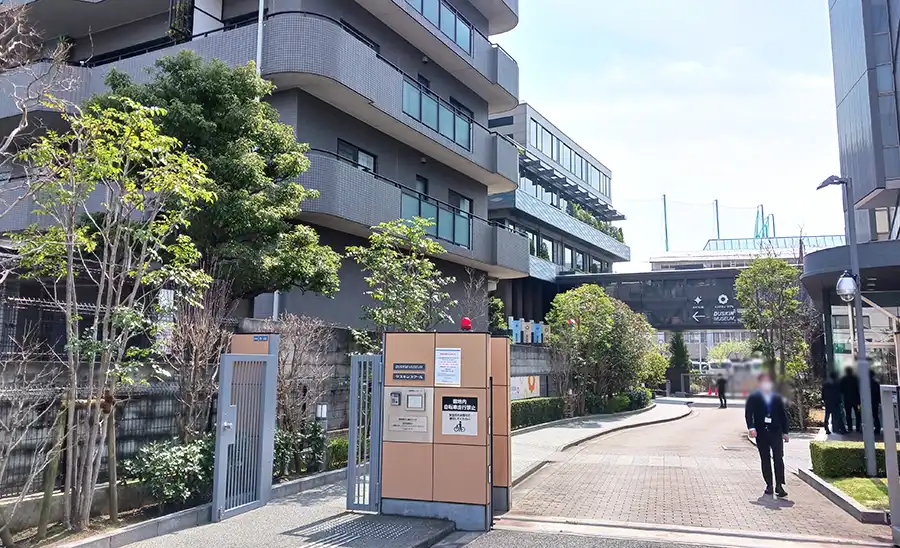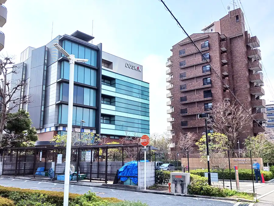 7 ダスキンミュージアムに到着です!ダスキンの会社の敷地内にあるので、門をくぐって左側に見えるビルがダスキンミュージアムです。
