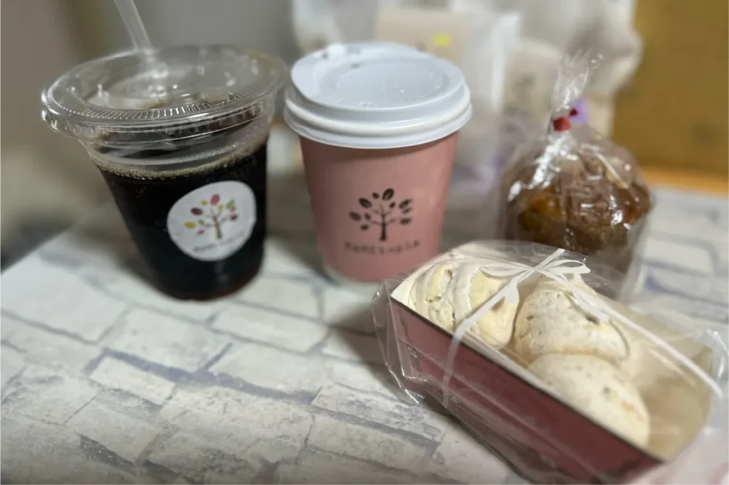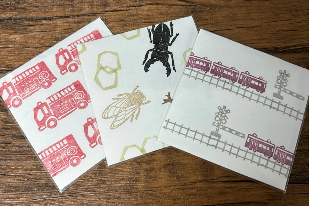 「MAMEtopia」のコク深いコーヒーと、「ドゥーニードゥ」の紅茶パネトーネや焼菓子でお茶タイムを。島根県浜田市のアンテナショップ「からちゃん」では、将棋の王将戦でのおやつに登場した「ささ井屋」のどら焼きもゲット!消しゴムはんこの「みぃはんこ」では、電車柄などのかわいいポチ袋を購入しました。