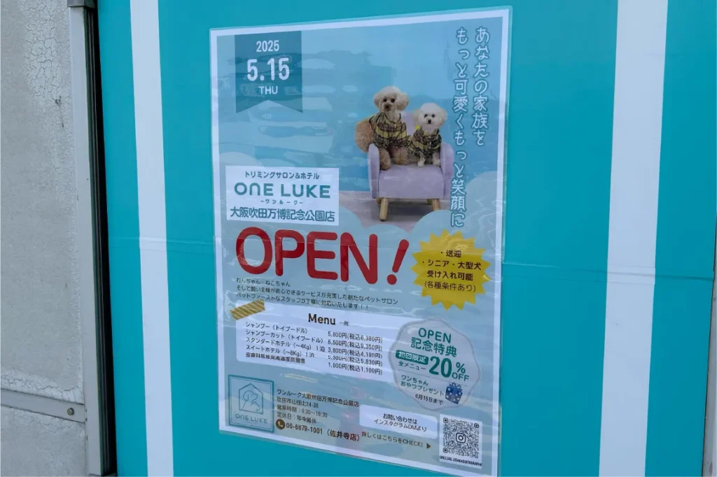 オープン記念特典として、トリミングの全メニューが初回20%オフとなるため、ぜひ訪れてみてください。