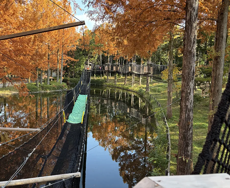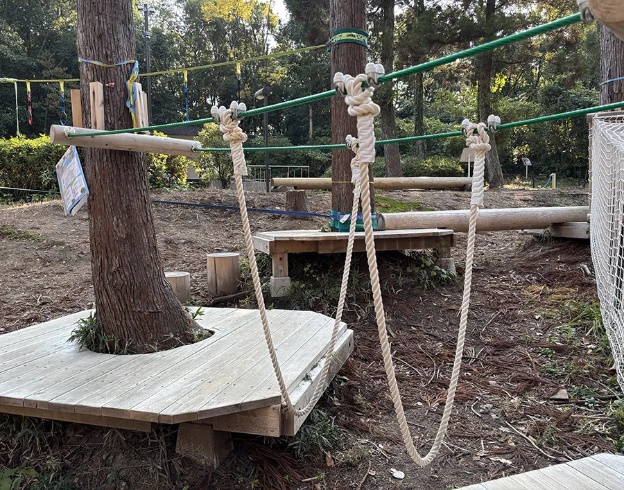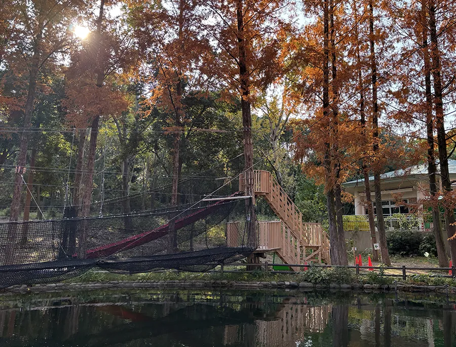 | 料金 | ・トランポリン 500円(5分/回) ・ツリーシェイドアドベンチャー 無料 ・ツリートップアドベンチャー(ピクニックコース) 小学生以下5歳以上1,500円 / 保護者(18歳以上) 1,500円、中学生以上 2,000円 ※おひとり一周の料金。 ※別途自然文化園・日本庭園共通料金要(大人260円・小中学生80円)。 |