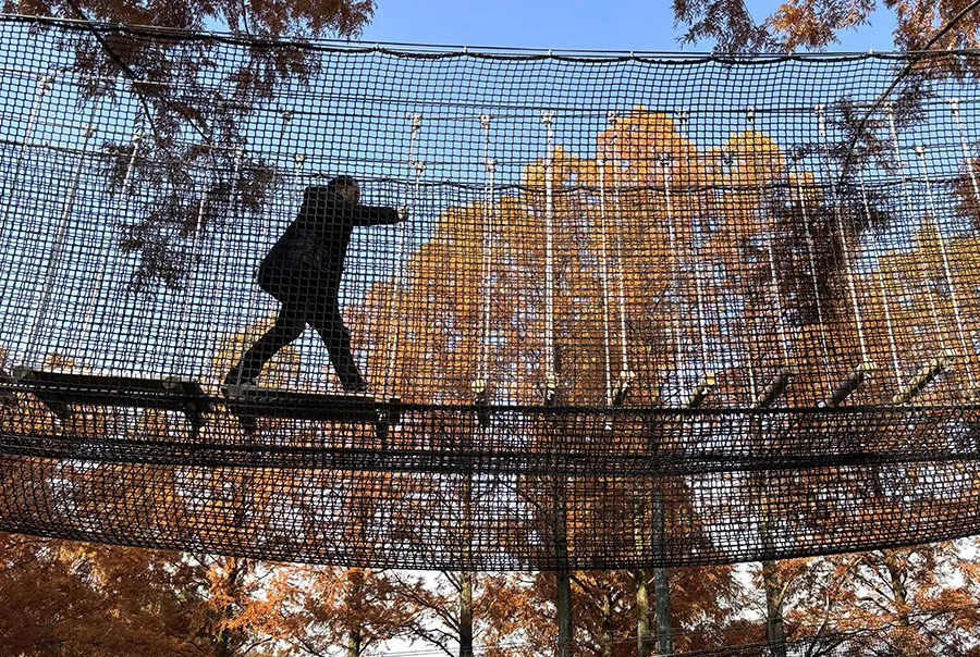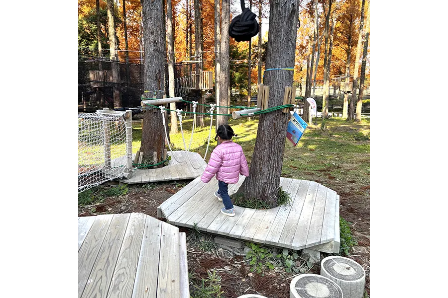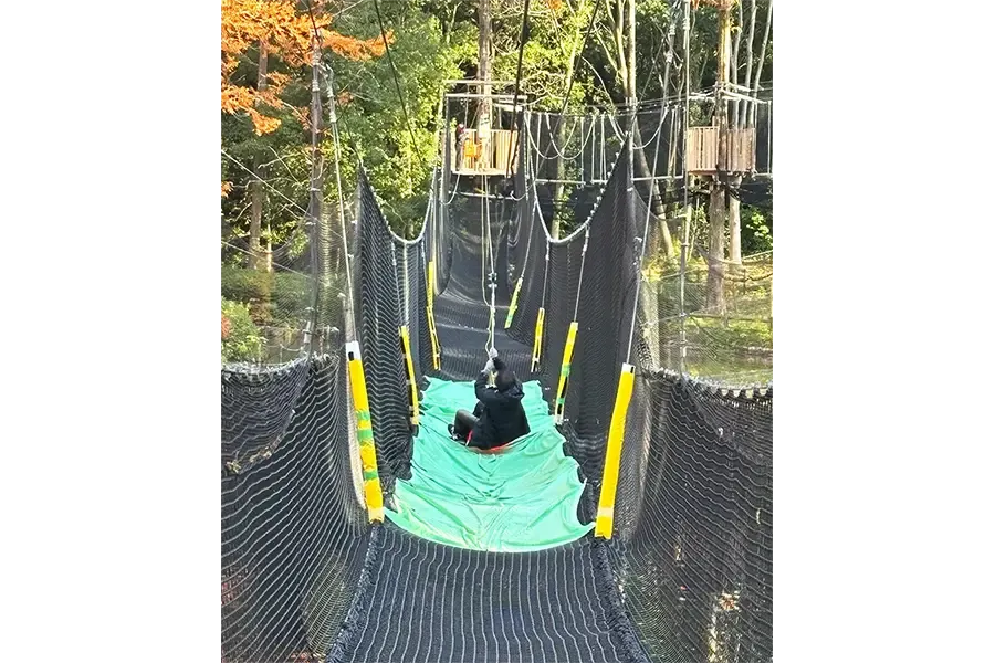 「ボウケンノモリ万博記念公園店」は、ハーネスなしで楽しめるマチナカアドベンチャー。